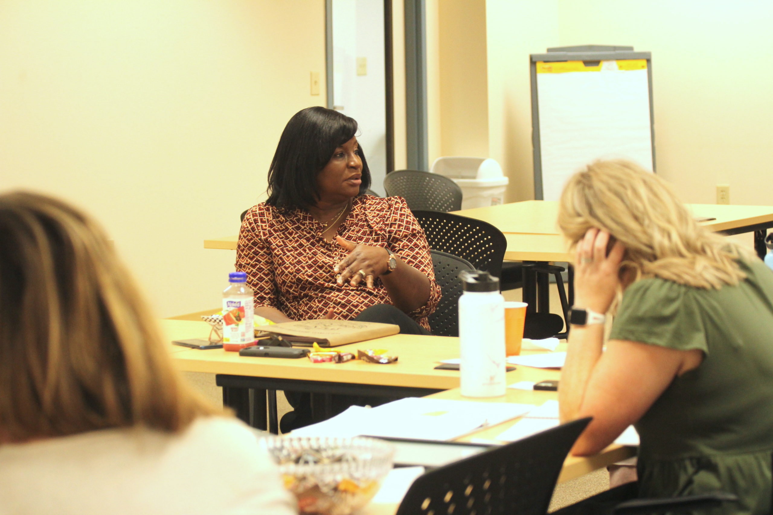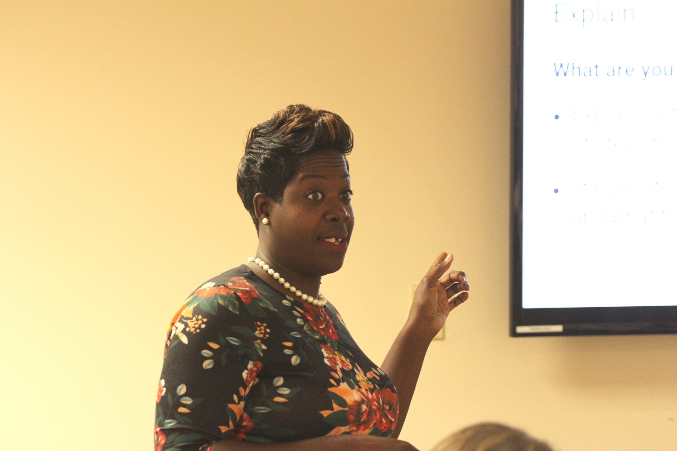 Toyinda Smith discusses coaching skills with the Triple P coordinators.